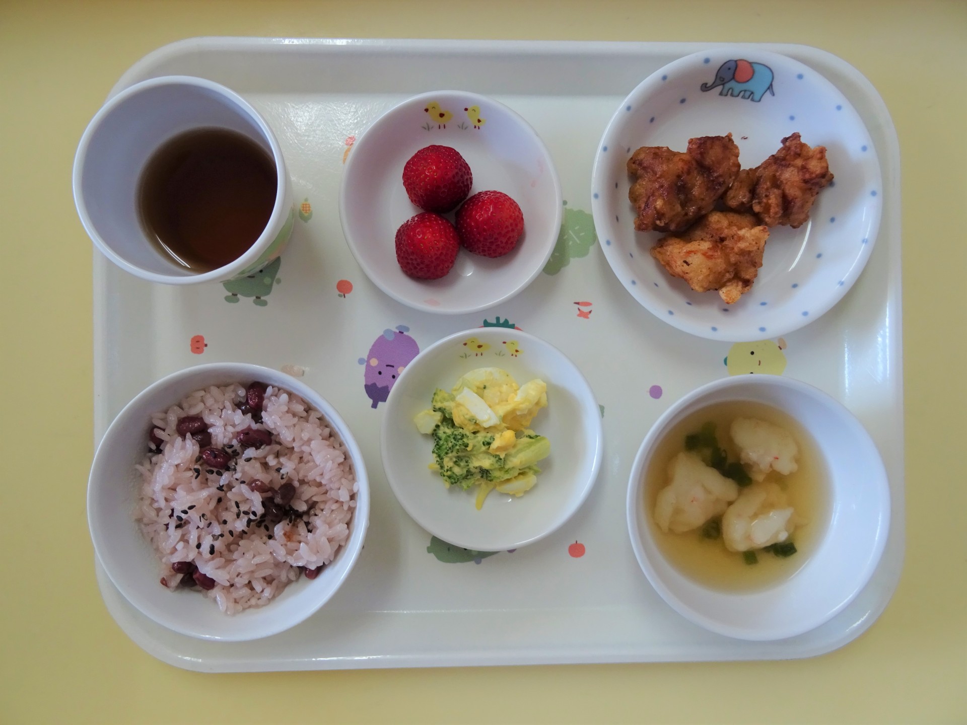 2023年5月18日 / 最終更新日時 : 2023年5月18日 民生博愛会 給食とおやつのブログ 4月 入園祝いメニュー 4月3日 入園祝いメニュー 赤飯・すり身汁・鶏肉の竜田揚げ・ブロッコリーとカリフラワーのサラダ・イチゴ