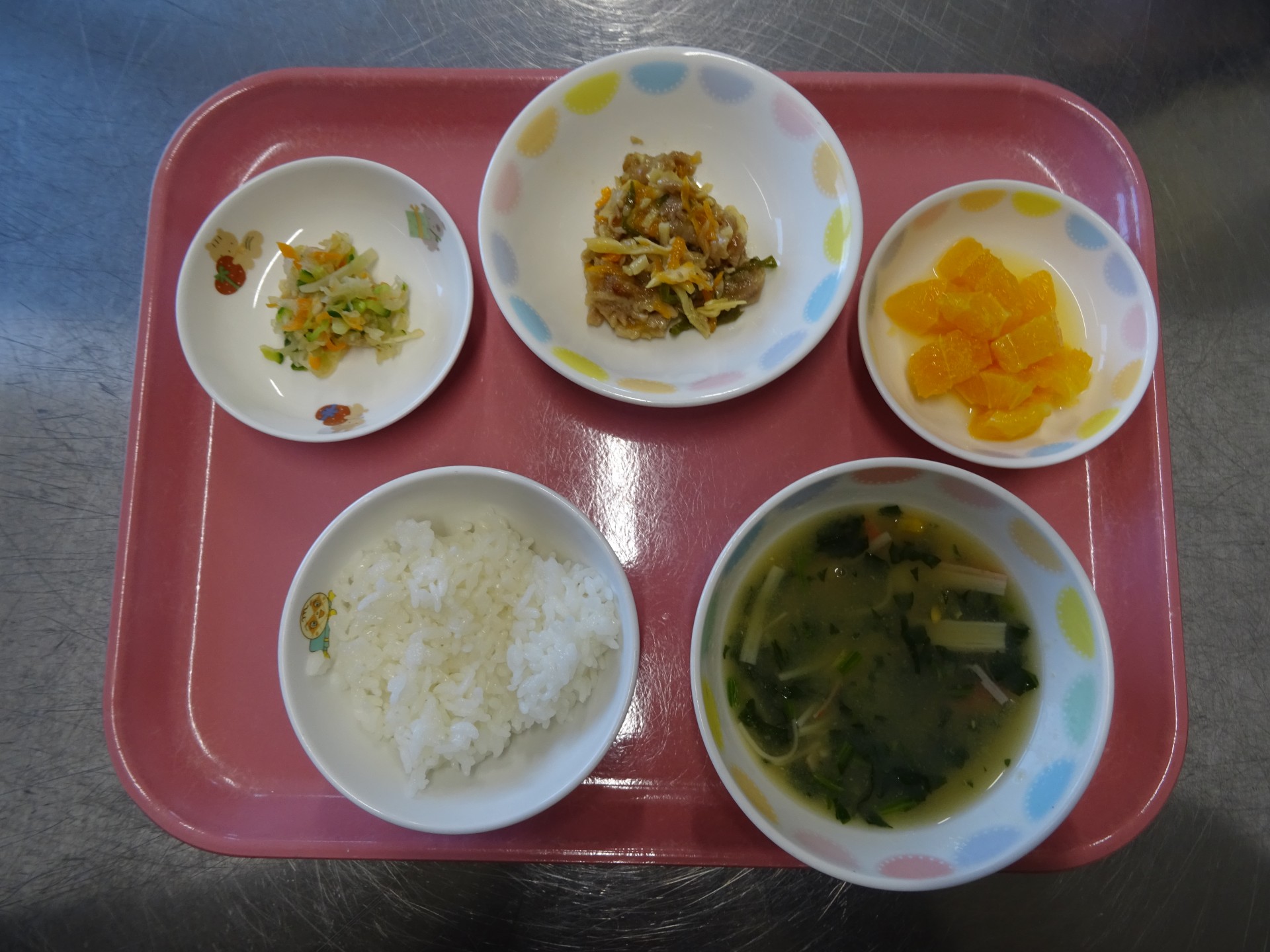 2023年7月28日 / 最終更新日時 : 2023年7月28日 民生博愛会 給食とおやつのブログ 6月 食育メニュー 6月19日 食育メニュー 第二大野保育園 ごはん、かにかまとコーンのスープ、チンジャオロース、カミカミサラダ、オレンジ