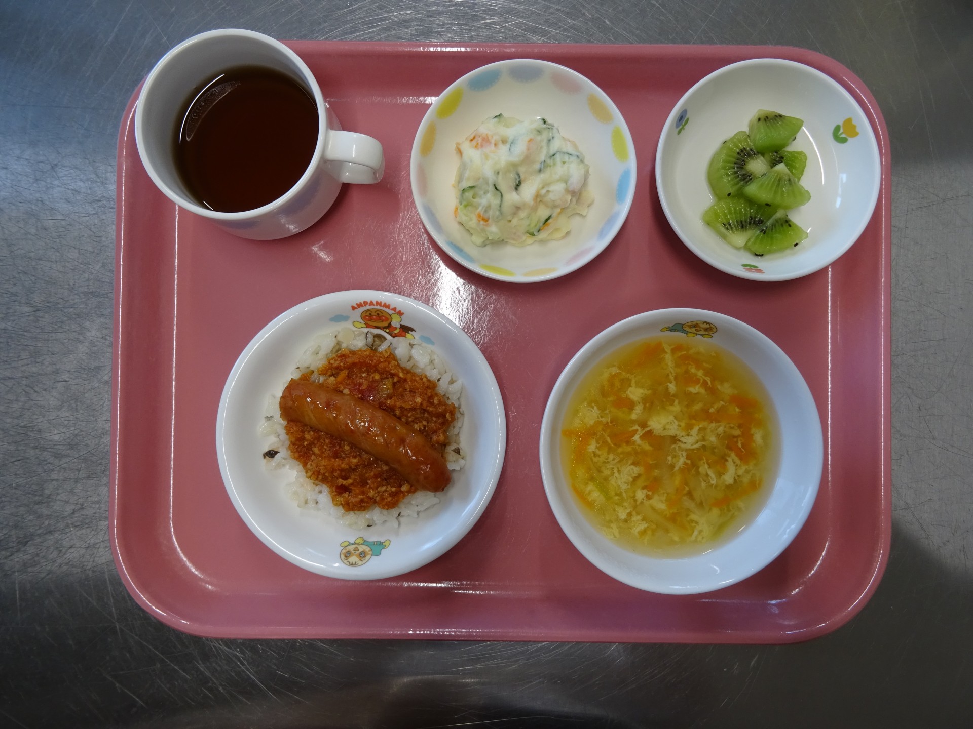 2023年7月28日 / 最終更新日時 : 2023年7月28日 民生博愛会 給食とおやつのブログ 6月 お楽しみメニュー 6月26日 お楽しみメニュー 第二大野保育園 ウインナーミートライス、洋風かきたまスープ、ポテトサラダ、キウイ