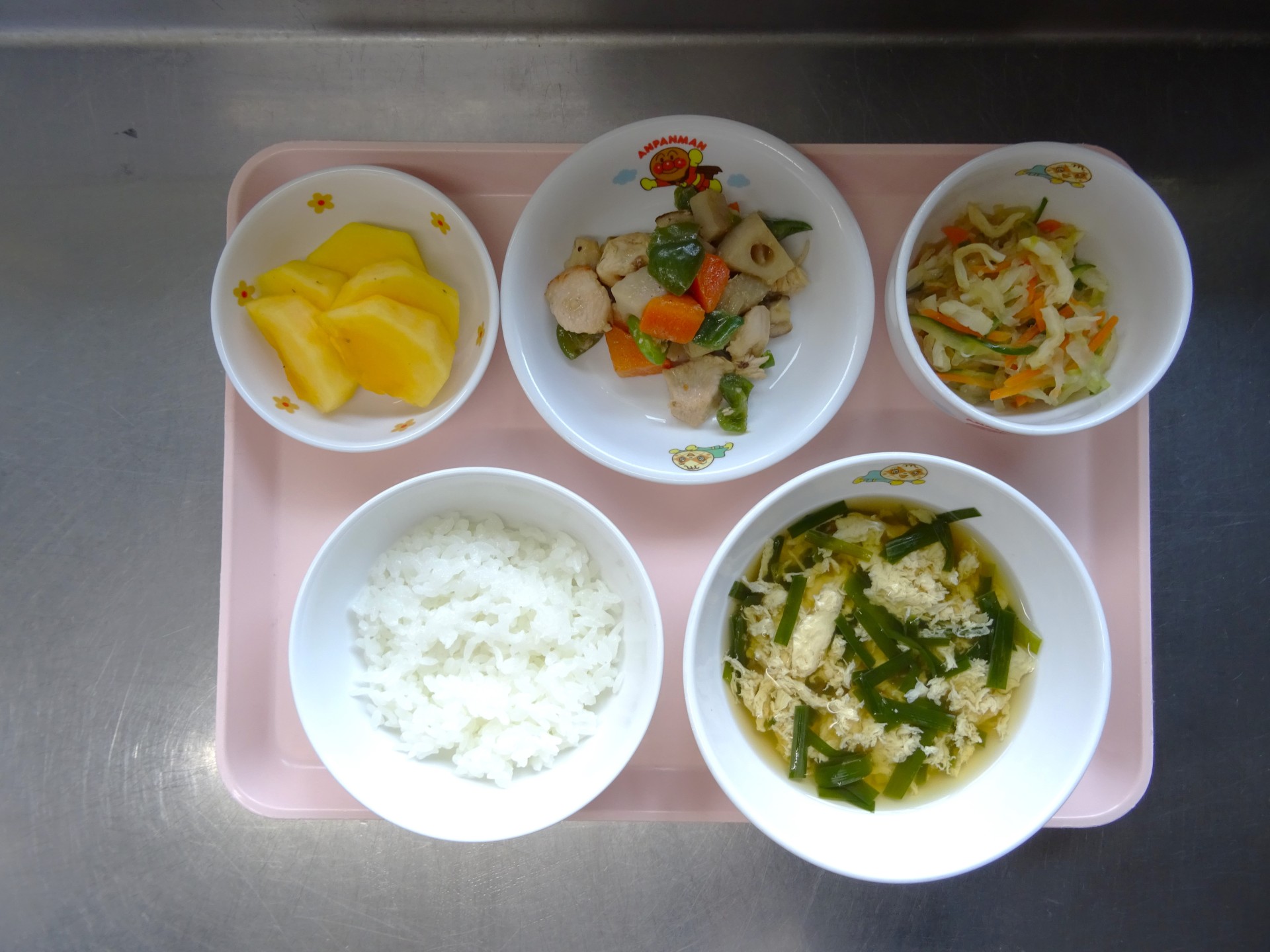 2023年11月17日 / 最終更新日時 : 2023年11月17日 民生博愛会 給食とおやつのブログ 10月 食育メニュー 10月19日(木) 食育メニュー 第四東光保育園 ごはん、ニラ玉汁、鶏肉と根菜のオイスター炒め、カミカミサラダ、かき