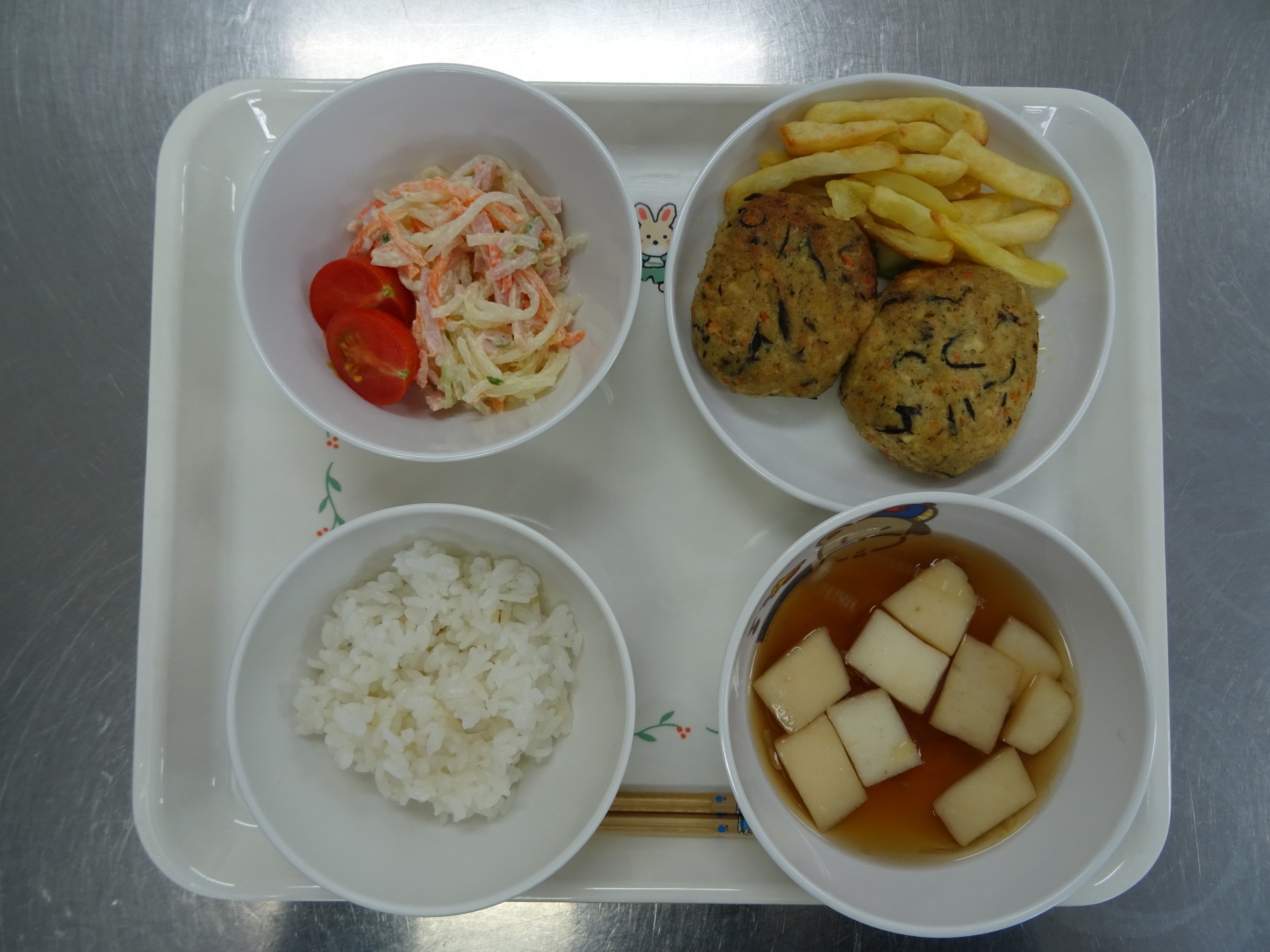 2024年3月1日 / 最終更新日時 : 2024年3月1日 民生博愛会 給食とおやつのブログ 2月 行事メニュー 2月2日(金) 節分メニュー 第二東光保育園 昼食 麦ごはん、すまし汁(はんぺんとねぎ)、節分ハンバーグ、春雨のシルバーサラダ 午後のおやつ 鬼蒸しパン、牛乳