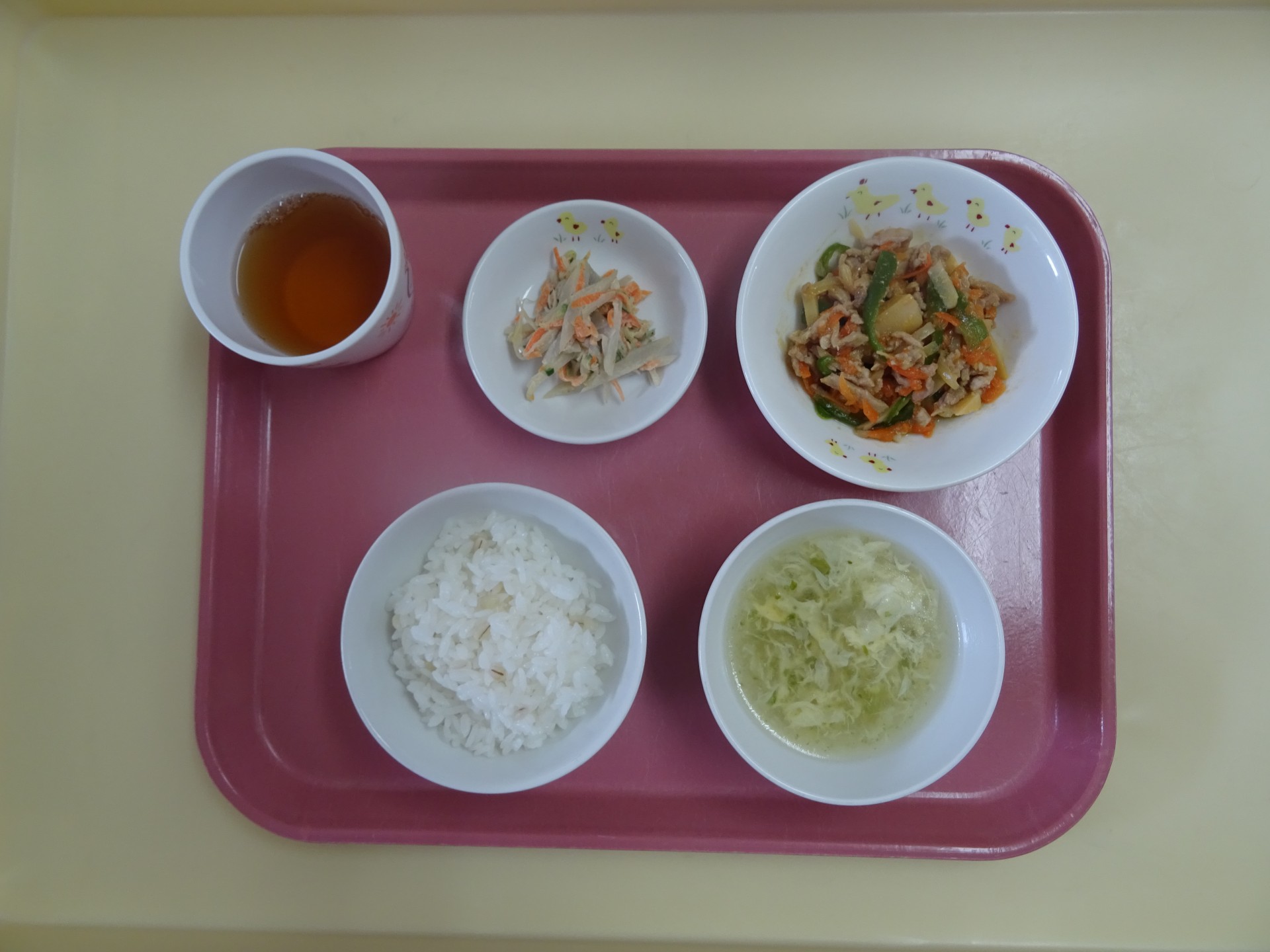 2024年5月23日 / 最終更新日時 : 2024年5月23日 民生博愛会 給食とおやつのブログ 4月 食育メニュー 4月19日(金) 食育メニュー 東光保育園 麦ごはん、中華風コーンスープ、チンジャオロース、ゴボウサラダ