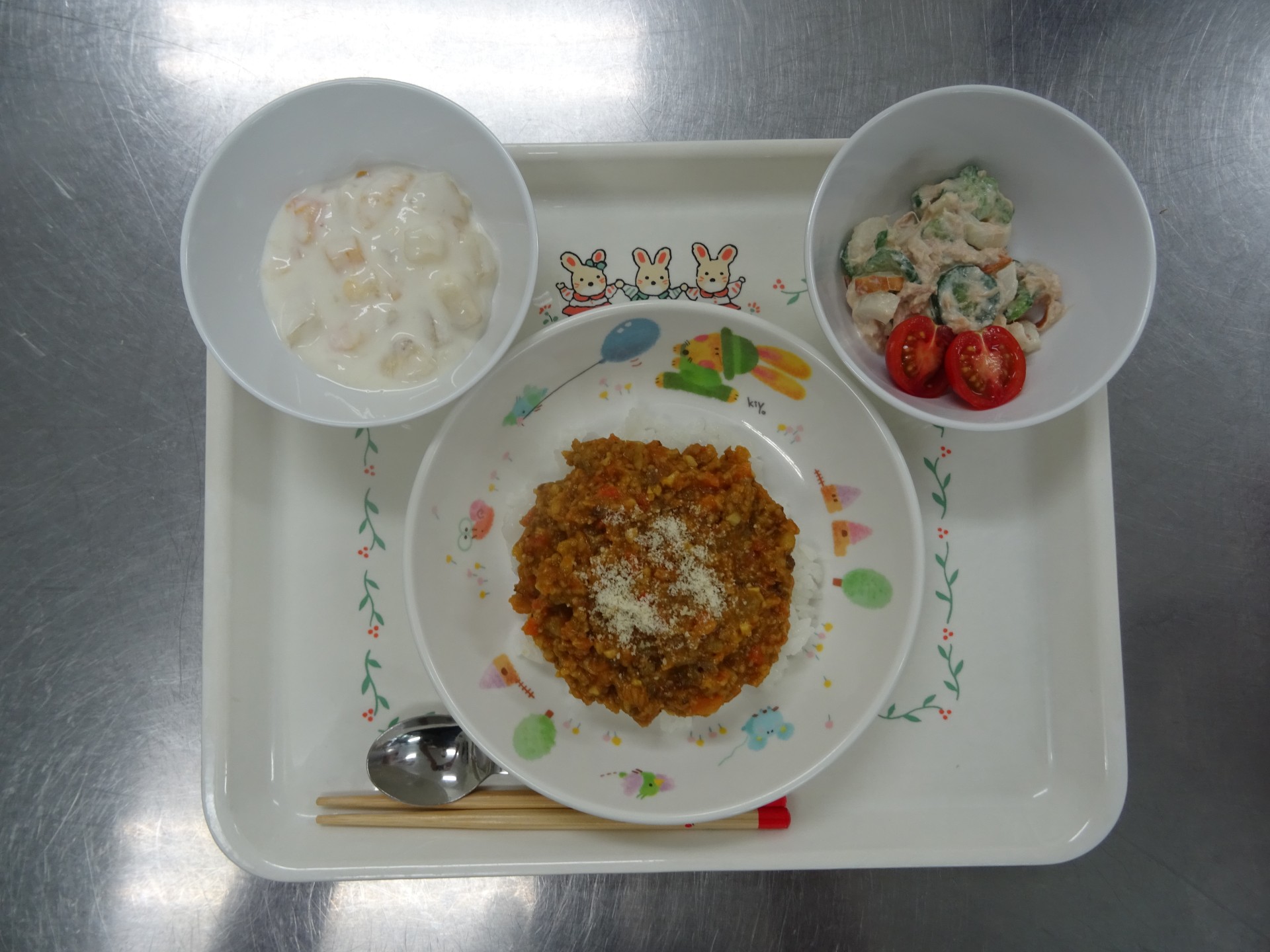 2024年7月19日 / 最終更新日時 : 2024年7月19日 民生博愛会 給食とおやつのブログ 6月 食育メニュー 6月19日(水) 第二東光保育園 食育メニュー ごはん、根菜カレー、蛇の目サラダ、フルーツヨーグルト