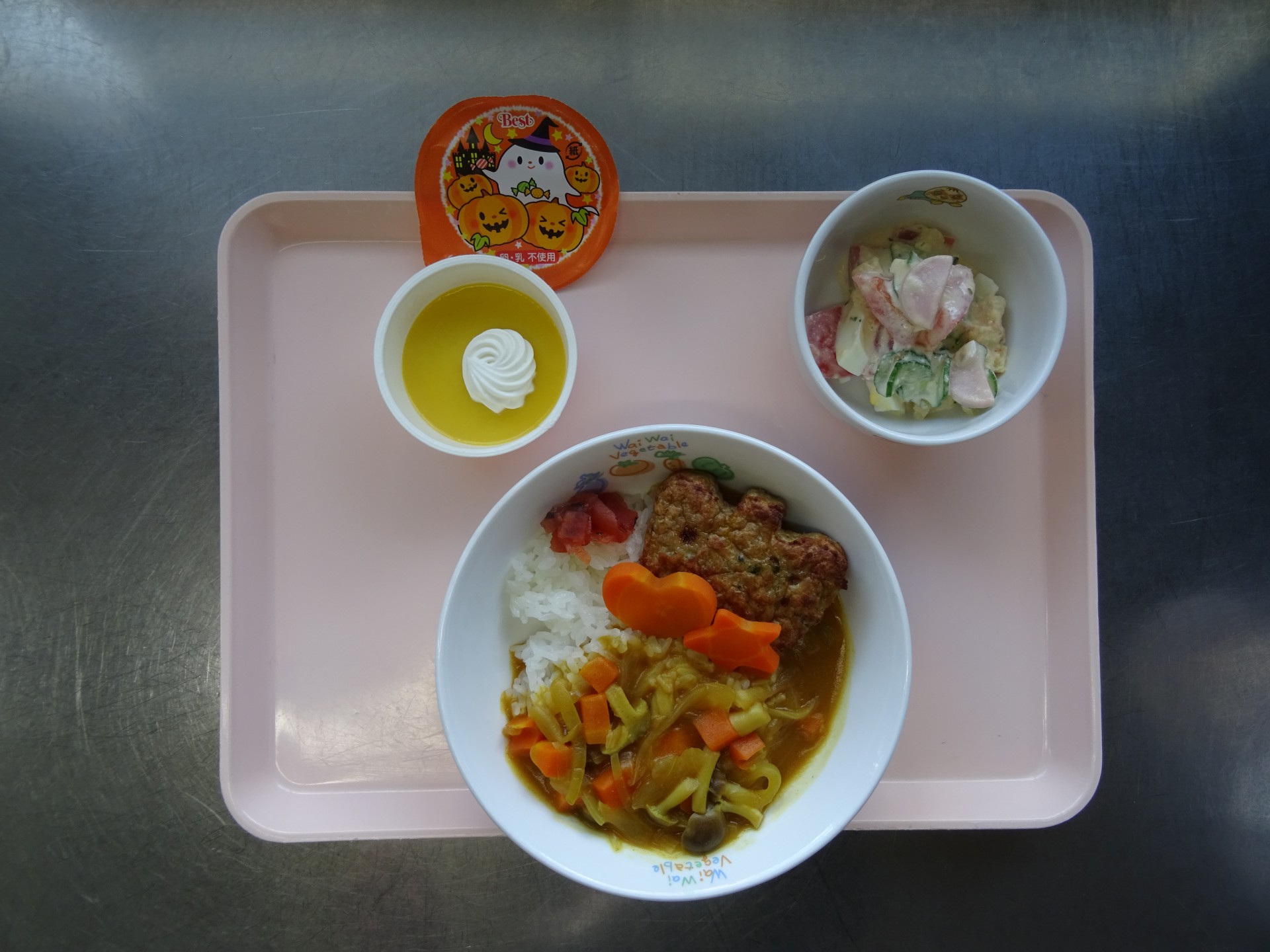 2024年11月15日 / 最終更新日時 : 2024年11月15日 民生博愛会 給食とおやつのブログ 10月 行事メニュー 10月31日(木) ハロウィンメニュー 第四東光保育園 ごはん、ハロウィンカレー、トマトのシーザーサラダ、パンプキンババロア