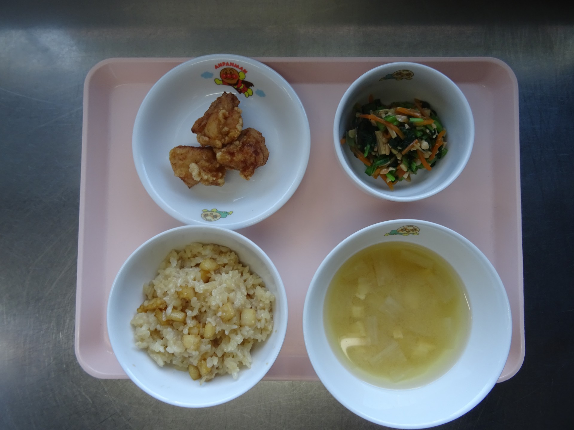 2024年11月25日 / 最終更新日時 : 2024年11月25日 民生博愛会 給食とおやつのブログ 11月 食育メニュー 11月19日(火) 食育メニュー 第四東光保育園 いかめしの混ぜご飯、みそ汁(大根と油揚げ)、鶏肉のから揚げ、小松菜のなめたけ和え(納豆)