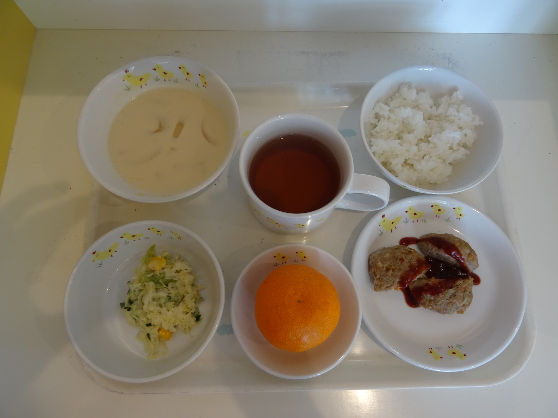 2025年1月23日 / 最終更新日時 : 2025年1月23日 民生博愛会 給食とおやつのブログ 12月 食育メニュー 12月19日(木) 大野保育園 食育メニュー ごはん、豆乳スープ、根菜ハンバーグ、コーンサラダ、みかん