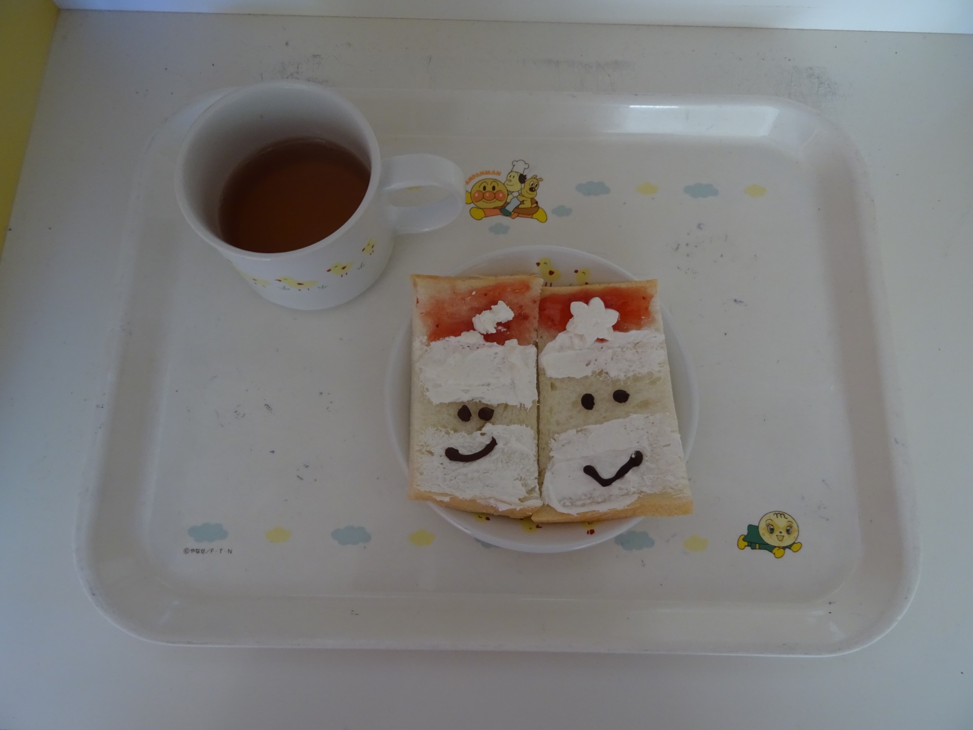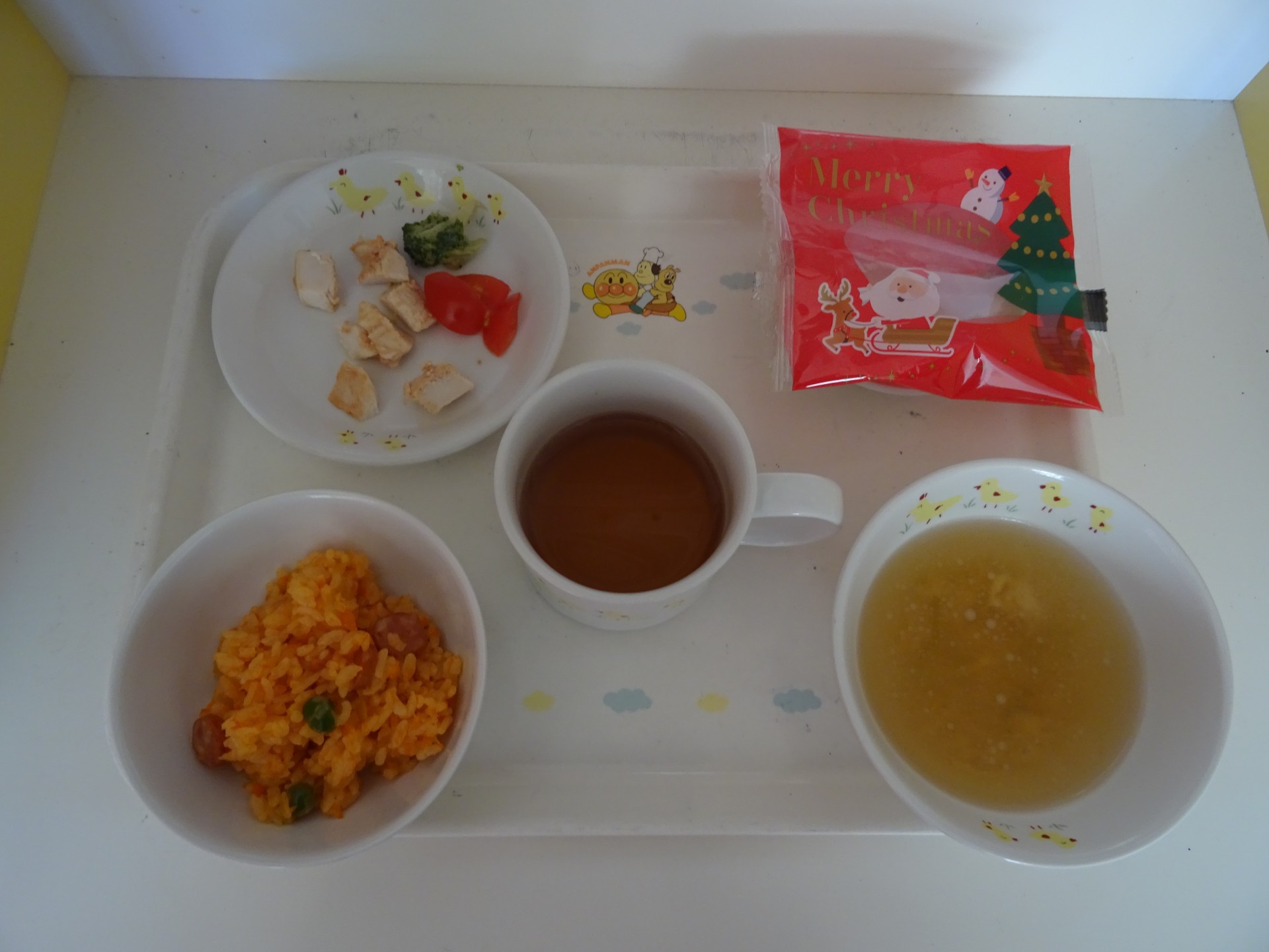 2025年1月23日 / 最終更新日時 : 2025年1月23日 民生博愛会 給食とおやつのブログ 12月 クリスマスメニュー 12月24日(火) 大野保育園 クリスマスメニュー 昼食 ケチャップライス、コンソメスープ、タンドリーチキン、クリスマスカップケーキ 午後おやつ サンタトースト、牛乳