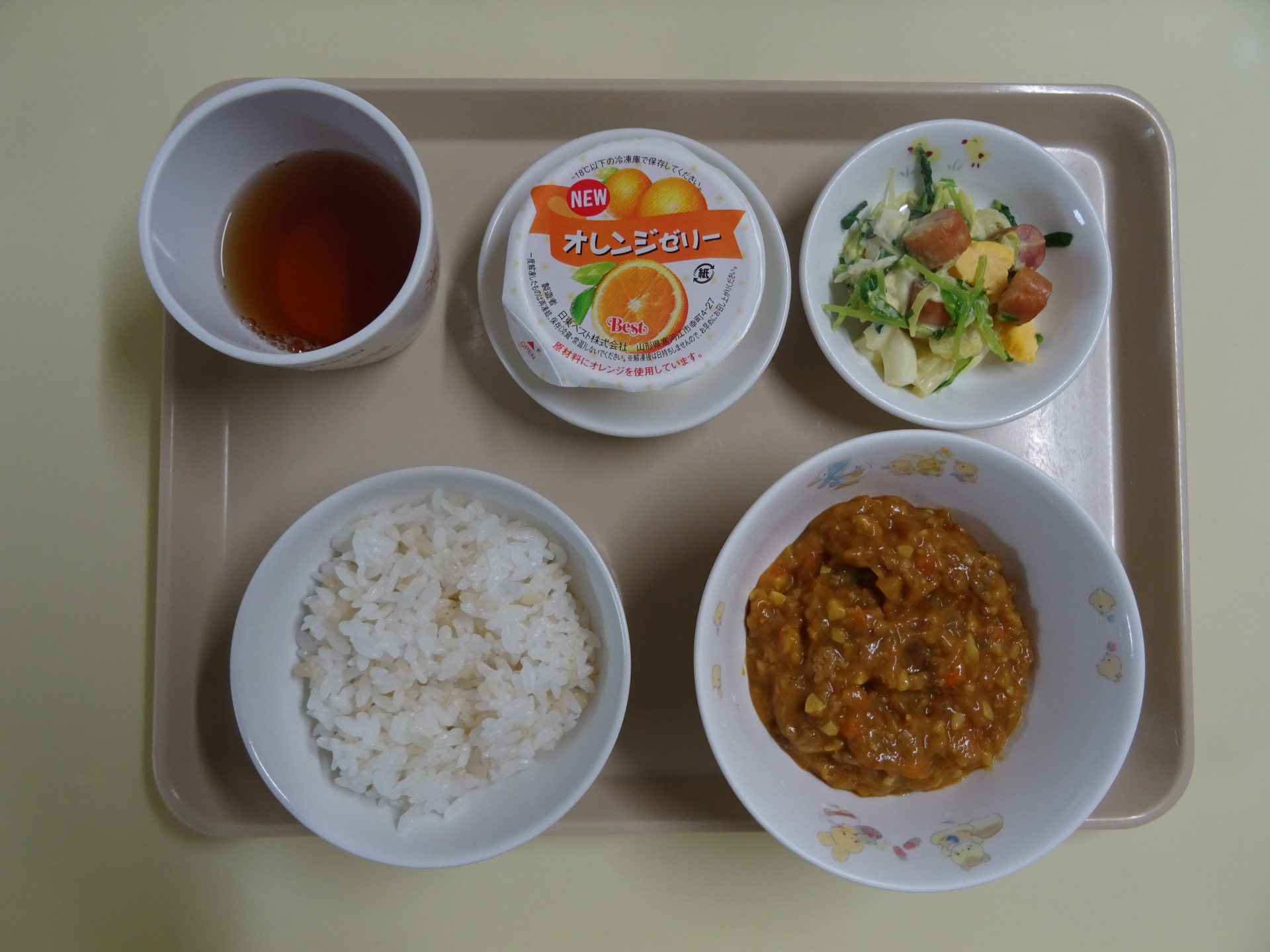2025年4月28日 / 最終更新日時 : 2025年4月28日 民生博愛会 給食とおやつのブログ 4月 食育メニュー 4月18日(金) 食育メニュー 東光保育園 胚芽ごはん、根菜カレー、豆苗と玉子のサラダ、オレンジゼリー
