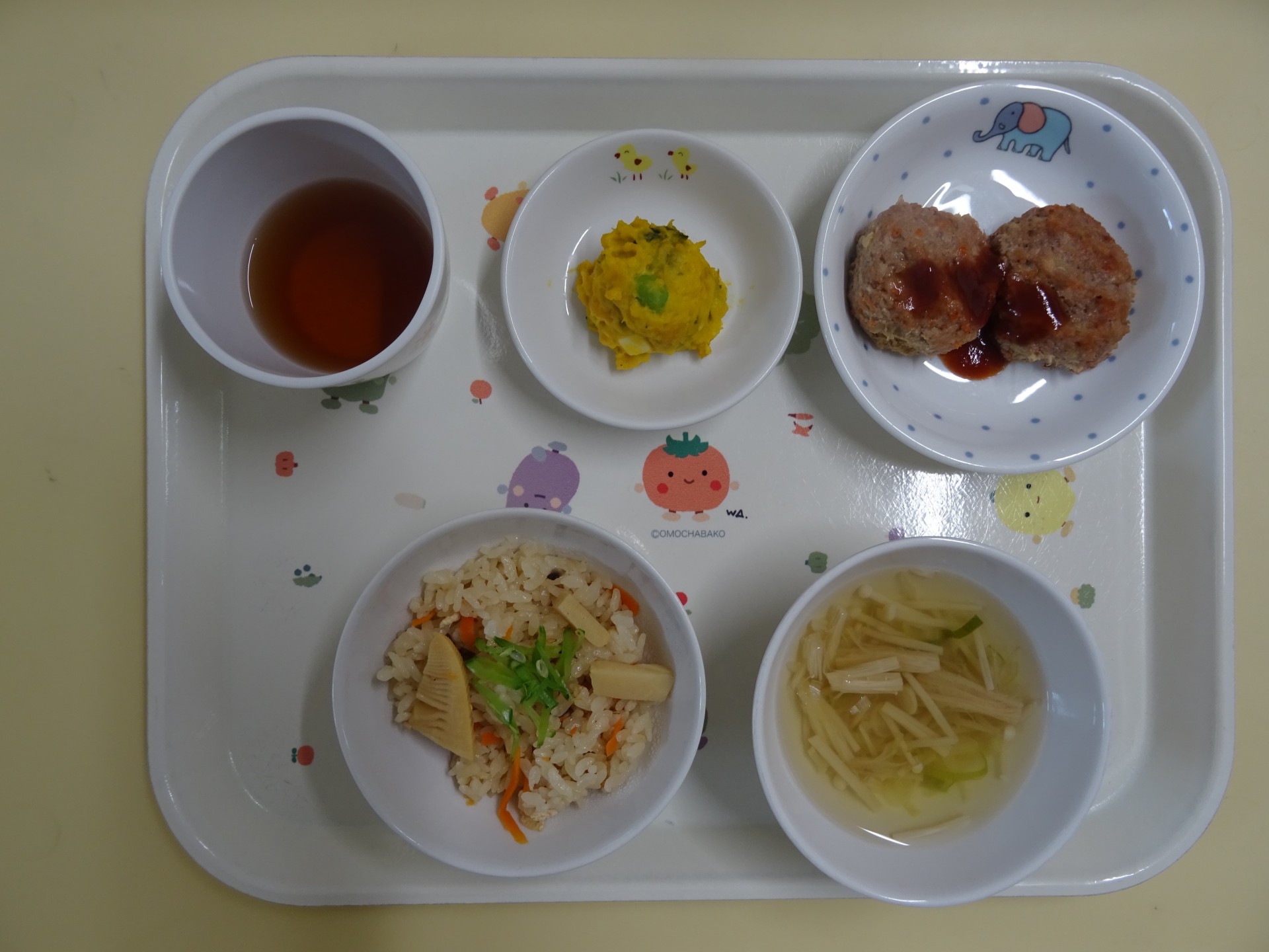 2025年6月19日 / 最終更新日時 : 2025年6月19日 民生博愛会 給食とおやつのブログ 5月 行事メニュー 5月2日(金) 行事メニュー 東光保育園 たけのこごはん、みそ汁(えのきとねぎ)、ハンバーグ、パンプキンサラダ 午後のおやつ こいのぼりクレープ、牛乳