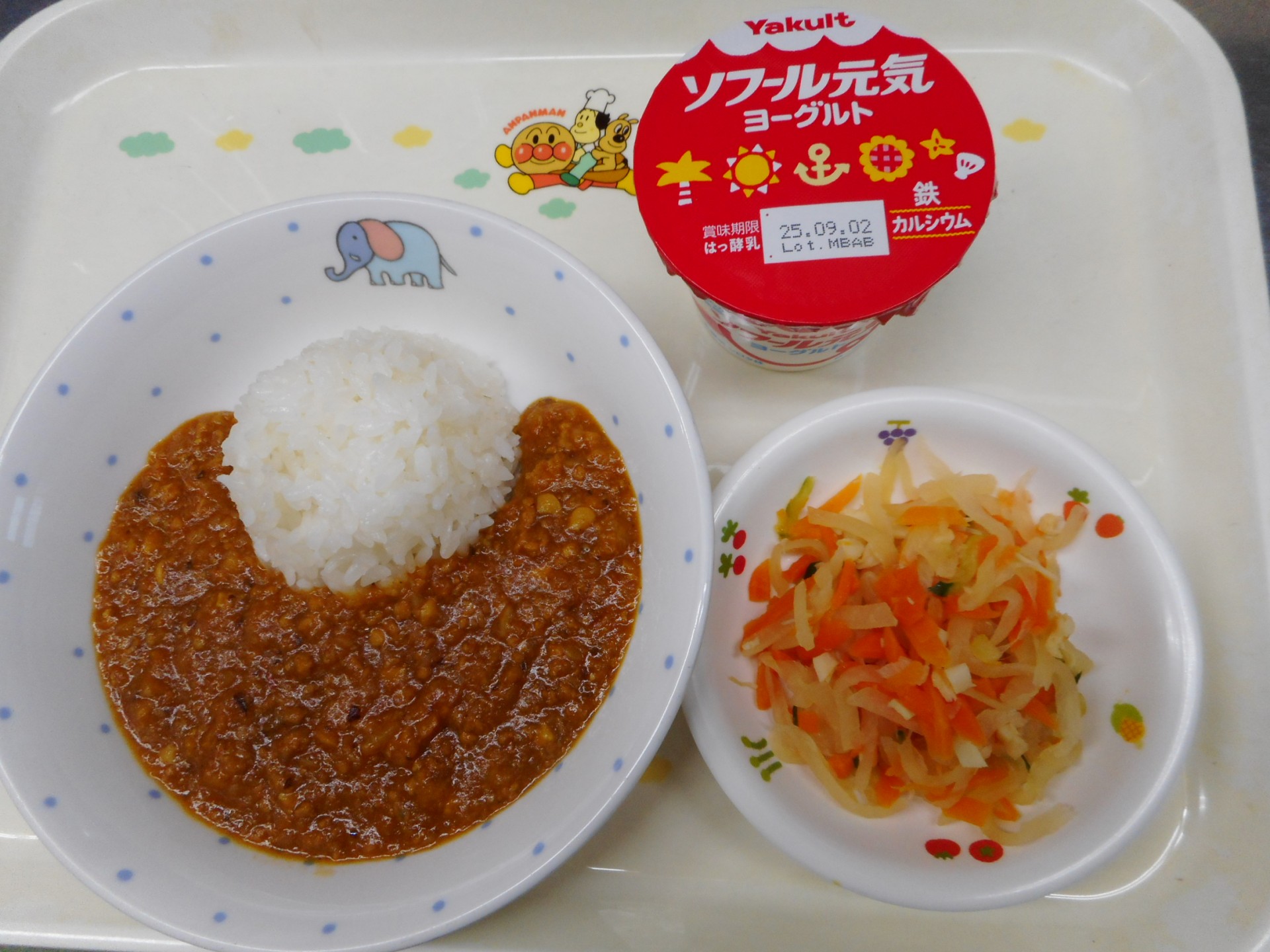 2025年8月27日 / 最終更新日時 : 2025年8月27日 民生博愛会 給食とおやつのブログ 8月 食育メニュー 8月19日(火) 食育メニュー 第三東光保育園 ごはん、根菜ドライカレー、カミカミサラダ、元気ヨーグルト