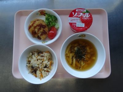 2025年11月25日 / 最終更新日時 : 2025年11月25日 民生博愛会 給食とおやつのブログ 11月 行事メニュー 11月14日(金) 七五三メニュー 第四東光保育園 山菜おこわ、八杯汁、野菜コロッケ、ソフールストロベリー