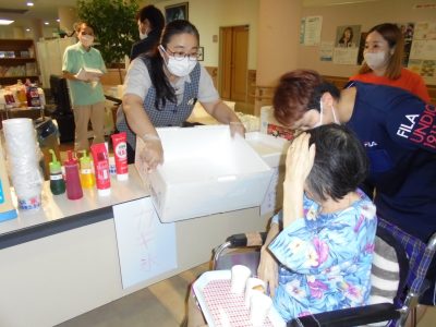 たこ焼き、かき氷、たいやき等々、宝引きや釣りゲーム、カラオケなど