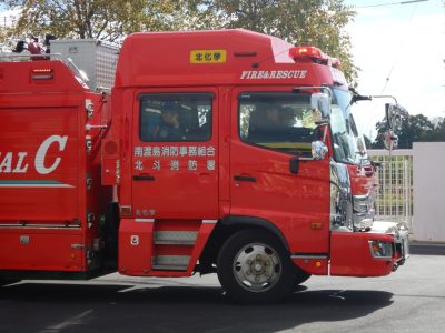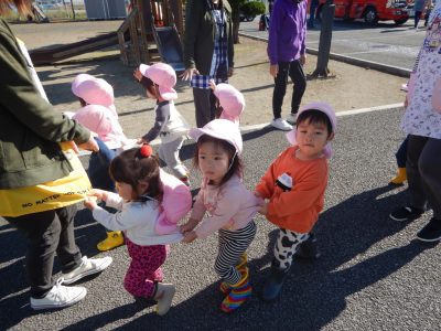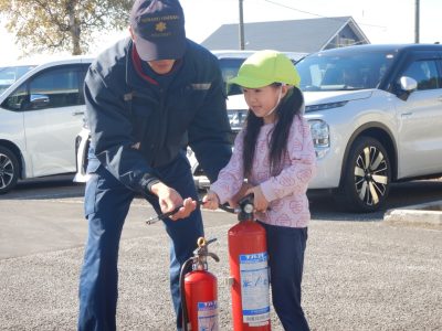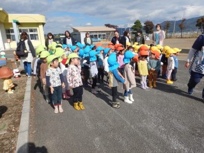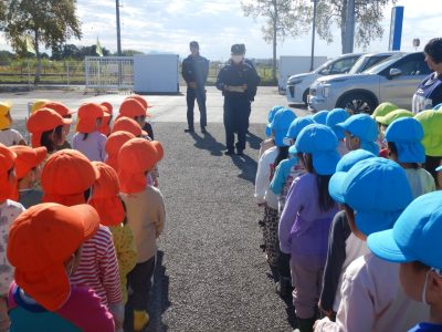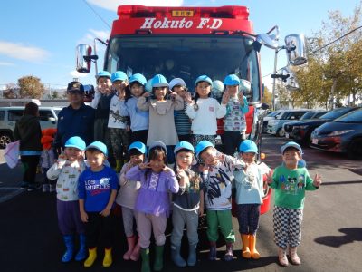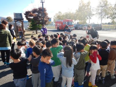 消防署員の方による防火指導もあり、消防車も見る事が出来ました。