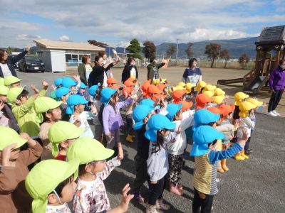 消防車が見えなくなるまで手を振っていた子ども達でした♪