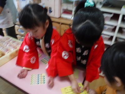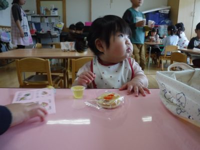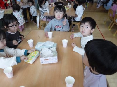 今回は、おやつを食べ、ティッシュ・ハンカチ、