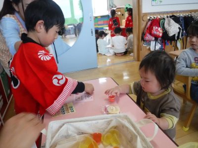 きりん組のお友達が、店員さんになって売ってくれました。