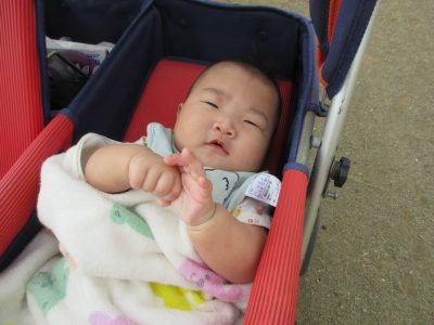まだ歩けないお友達は、避難者やベビーカーに乗り