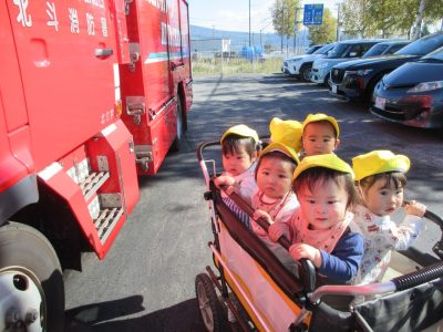 避難訓練で消防車の見学もしました(*^^*)