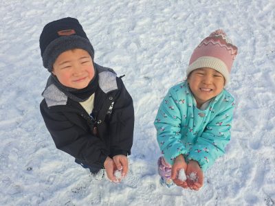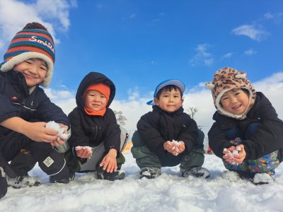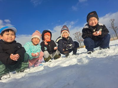 園庭へ行き、冬の自然に触れて遊びました⛄