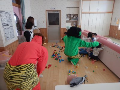 各保育室に豆まきに行ってくれました。
