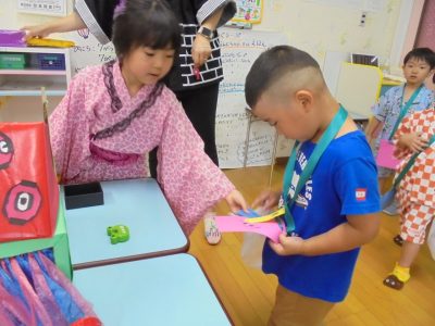 1日目は年長児ひまわり組がお店屋さんです。