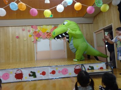 2025年10月14日 / 最終更新日時 : 2025年10月14日 第二大野保育園 季節のアルバム 夏祭り2日目 迫力満点の蛇踊りです。 ワッショイ!ワッショイ!おみこしワッショイ!! なんと、保育園に恐竜が遊びに来ました。子ども達大喜び!! 元気いっぱいに炭坑節を踊るひまわり組の子ども達 楽しい事がいっぱいの夏祭りでした。