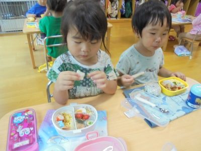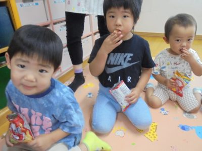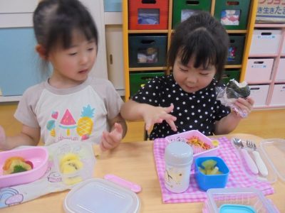 2025年10月14日 / 最終更新日時 : 2025年10月14日 第二大野保育園 季節のアルバム 徒歩遠足 2歳児 遠足ごっこでお弁当を作ります。 シール ペタペタ。 おやつも食べよう。 見て見て~! お弁当おいしいね!