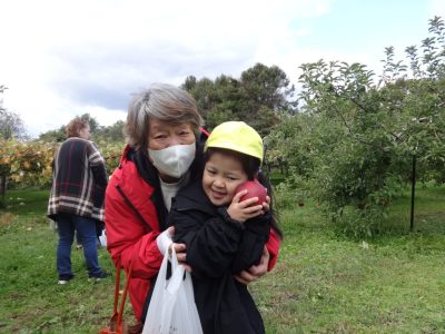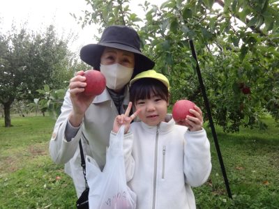 おじいちゃんやおばあちゃんと一緒にリンゴ狩り楽しかったね!