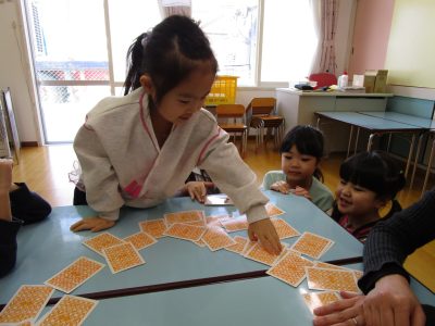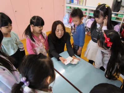 2026年2月10日 / 最終更新日時 : 2026年2月10日 第二大野保育園 お知らせ 英語教室 みんなの大好きな英語の時間です。 今日はカードを使います。 英語教室では英語で話します。 カードを選ぶのも楽しそうです。