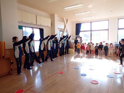 2025年11月21日 / 最終更新日時 : 2025年11月21日 東光幼稚園 季節のアルバム 上磯高校のお兄さん、お姉さんが来てくれました!! 緊張気味の高校生が自己紹介をしてくれました✨ みんなで一緒に元気いっぱい体操をしました! オセロゲーム「負けないぞ~」と年長さん 段々と盛り上がってきました