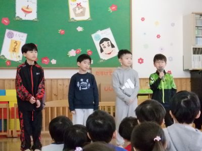 2026年1月17日 / 最終更新日時 : 2026年1月17日 東光幼稚園 季節のアルバム 小学生交流会がありました 1年生は自己紹介で「好きな事」を教えてくれました。 2年生は「3学期に頑張りたいこと」を教えてくれました。 元気いっぱいに、体操「だるまさんがおどった!」 ゲーム「ねらって落とそう」真剣です!!