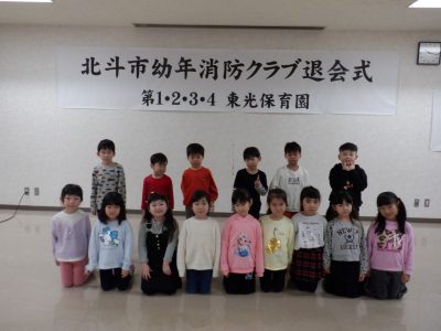 2026年3月13日 / 最終更新日時 : 2026年3月13日 東光幼稚園 季節のアルバム 幼年消防クラブ退会式に参加しました🚒 「火遊びしないよい子になります!」と宣言 「火の用心」の歌を大きな声でうたいました。 代表2名が修了証書をいただきました。 小学校に行っても絶対に火遊びはしません!!