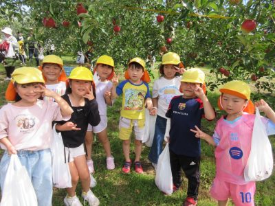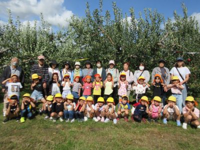 ゆりぐみさんが、おじいちゃんおばあちゃんと一緒にりんご狩りへ行ってきました!!