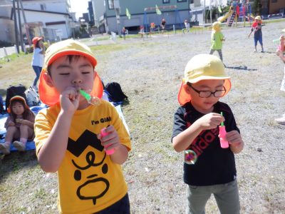 遊具で遊んだり、シャボン玉やフリスビーを楽しみましたよ。