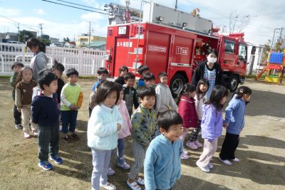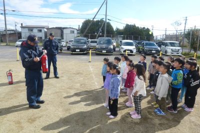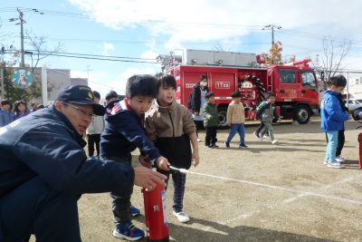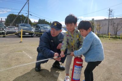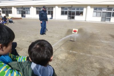 大事な約束事を教えてもらったり、水消火器体験もさせてもらいました。