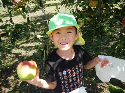 バスの中では歌を歌ったり、りんごクイズをして行きました!りんごの種類がたくさんあるなんて、みんなびっくり!!今日採るりんごの名前は何かな?
