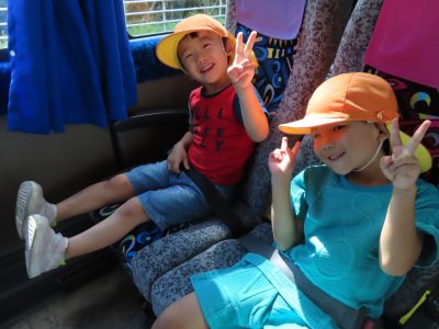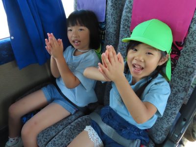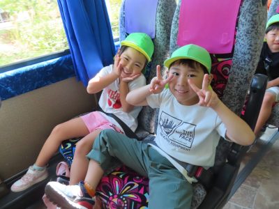 いるか組、くじら組でバスに乗ってりんご狩り遠足に出発です!