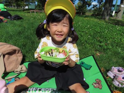 お昼は北斗市の運動広場に移動し、みんなで楽しみにしていたお弁当を食べました。