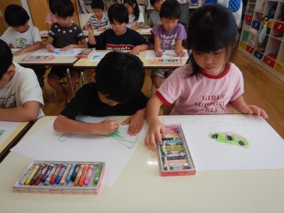 保育園に戻ってからは、今日の事を思い出しながら絵を描きました。