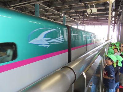 猛スピードで「はやぶさ1号」が到着!子ども達は大歓声です!