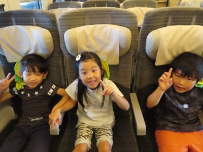 窓の外を見ながらも新幹線の速さに感動していました。