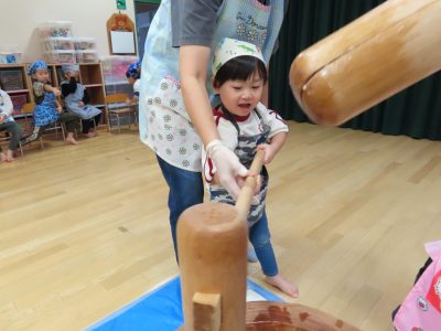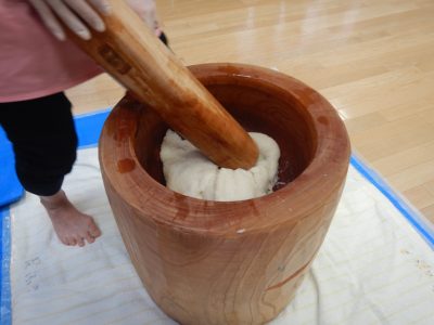 次は小さいお友達からお餅をついていきます。ぺったんぺったんとみんな楽しそうついていきます。
