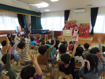 おひなさまの由来やひなまつりクイズをしました!みんな真剣です!