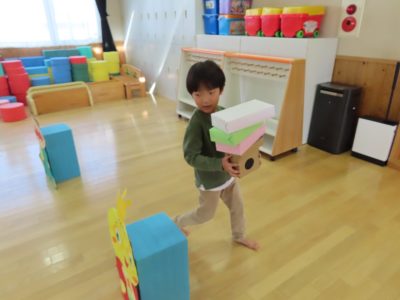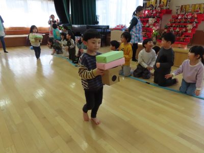 大きいクラスは菱餅運びゲーム!!落とさないで上手に運べるかな!?