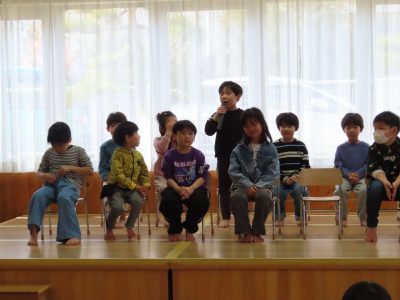 まずは自己紹介!保育園での思い出等、ハキハキと発表してくれました!さすがです!