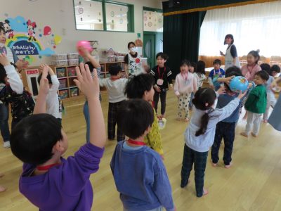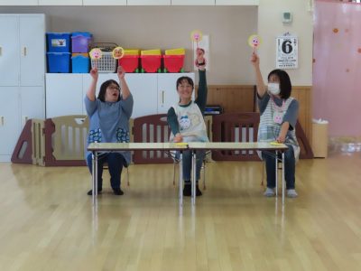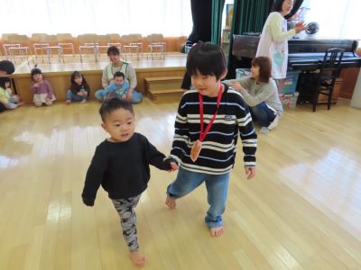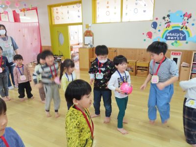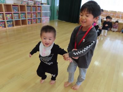 小さいクラスは大好きなくじらさんと手をつないで仲良しゲームをしました!