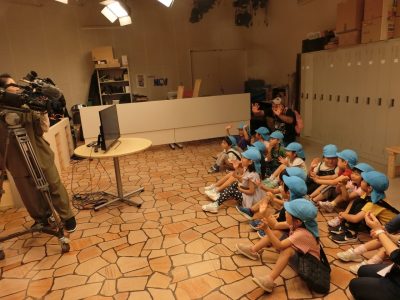 テレビカメラにも映ってみたよ!「やっほー」と手を振るみんなの姿が画面に!