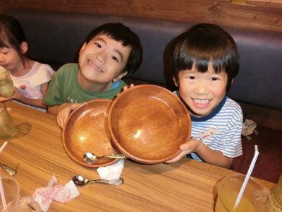 「じゃーん!完食!」すごい!お皿もピッカピカ✨「美味しかったよ!」