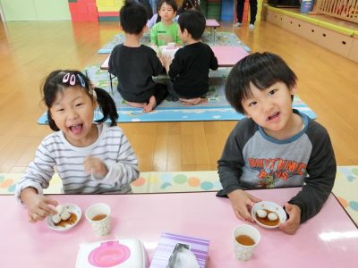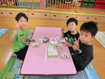 ぞう組さんが頑張ってついてくれたのでおもちが完成☆