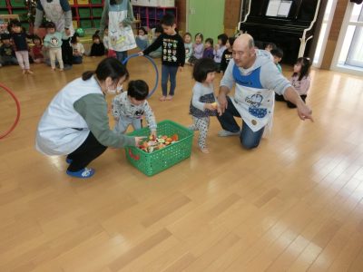 最後は、みんなが楽しみにしているゲーム!好きな食べ物をアンパンマンに運びます。